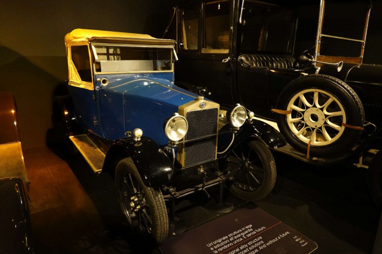"Velika garaža budućnosti", piše na ulazu gdje su izloženi primjerci s početka 20. stoljeća. Svijet je tada bio uzbuđen izumom i napretkom automobila pa je lokalni plemić blizak kompaniji Fiat osnovao muzej prije 90 godina.