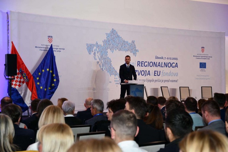 -U prosincu smo 2023. godine i zapravo smo došli do kraja. Ovo je zadnji mjesec provedbe projekata i malo nestvarno izgleda da smo danas već tu i da je prvih 10 godina članstva iza nas. Ako ćemo po nečemu pamtiti ovih 10 godina, uz brojne pogodnosti i koristi od našeg članstva, onda je to zasigurno po brojnim, europskim projektima i brojnim ulaganjima iz europskih fondova koji su realizirani u svim krajevima Lijepe naše. Nema kraja Hrvatske u kojem se nešto nije realiziralo, gdje nije došla ona dobro nam poznata ploča na kojoj piše "Sufinancira Europska unija", rekao je ministar regionalnog razvoja i fondova EU Šime Erlić na uvodnoj konferenciji.