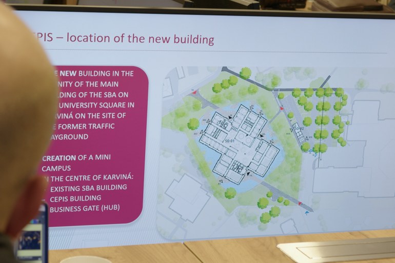-Ova zgrada je bila sjedište regionalne Komunističke partije Čehoslovačke. Stavljena je u funkciju 1988., godinu i pol prije Baršunaste revolucije tako da je na sreću komunisti nisu dugo koristili. Nakon promjene u ovom gradu je održan referendum o tome što sa zgradom. Pametni stanovnici Karvine odlučili su da bude sveučilište. Škola poslovne administracije je ustanovljena 1990. Od tada brinemo o ovoj zgradi i pretvaramo je u moderan obrazovni prosto, ističe Daniel Stavárek, prorektor za znanost i međunarodne odnose.