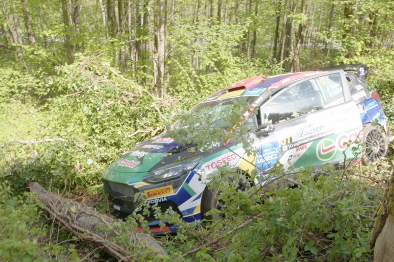 Nastradalo je drvo i ptičje gnijezdo. Erdener je natučen, a Ford Fiesta, iako je završila u jarku, bit će spremna za subotu i nastavak utrke.