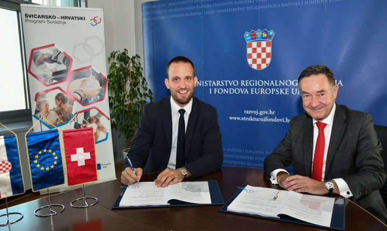 -Ovim ugovorom nastavljamo uspješnu suradnju sa švicarskim partnerima, kroz koju smo iz 1. doprinosa već uložili 42,7 milijuna švicarskih franaka u područja poput sigurnosti, društvenog i ekonomskog razvoja te razvoja okolišne infrastrukture, od čega je 6,3 milijuna bilo usmjereno za projekte organizacija civilnog društva, izjavio za nedavnog potpisivanja ugovora ministar regionalnog razvoja i fondova EU Šime Erlić.